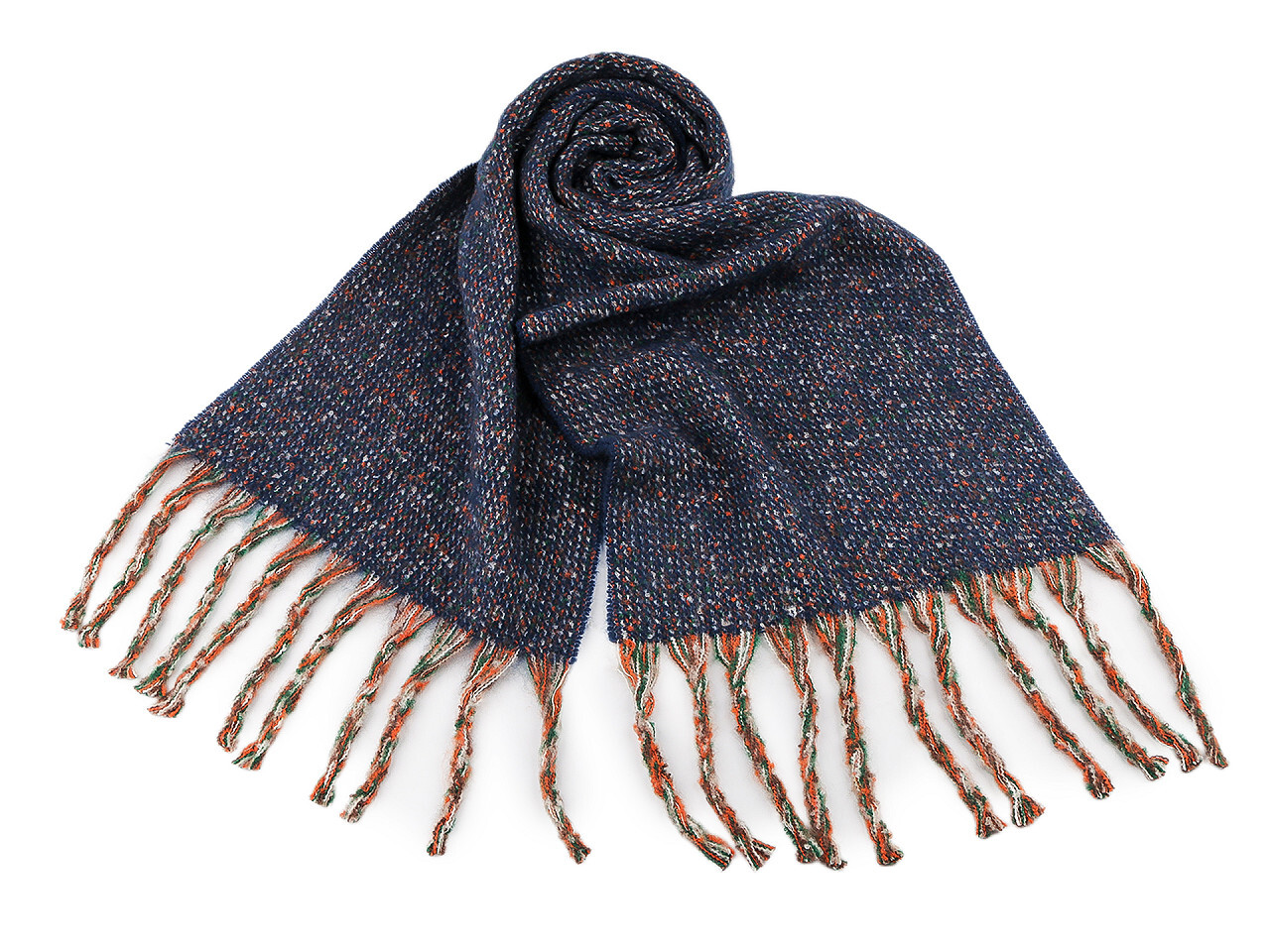 Zimní šála s třásněmi 35x185 cm - 1 ks - 3 modrá tmavá