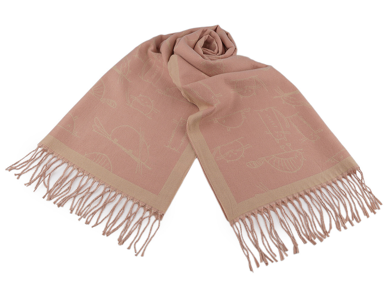 Zimní šála / pléd s třásněmi, kočky 65x180 cm - 1 ks - 13 pudrová