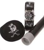 Zajímavá sada je určena pro mladé piráty . Naleznete v nípirátské hodinky ,dalekohled a klapku na oko . Hodinky mají černý číselník s nastavitelným textilním páskem. Na pásce přes oko je lebka se skříženými hnáty.