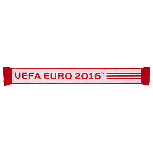 Šála je pletená a na konci se nachází třásně. Na jedné straně se nachází reprezentační logo s nápisem, na druhé potom logo nadcházejícího fotbalového turnaje 2016. Rozměry: 16,5 x 135 cm Materiál: hladká pletenina, 100% polyakryl Péče o materiál: Možnost prát v pračce