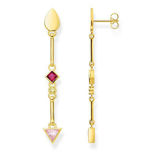 Náušnice \"Barevné kameny\" Thomas Sabo, H2039-995-7, Sterling Silver, 925 Sterling silver, 18k yellow gold plating, synthetic corundum red, zirconia yellow/pink