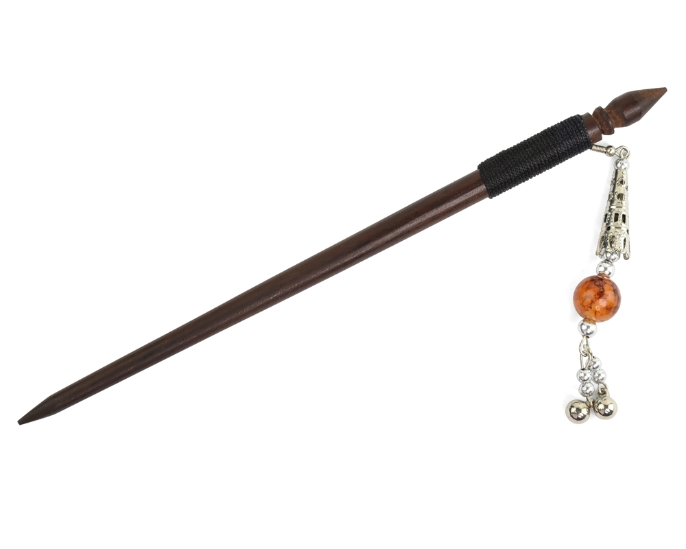 Dřevěná jehlice do vlasů, Zdobená kovovým přívěsem a barevným korálkem.Jedná se o rukodělný výrobek.