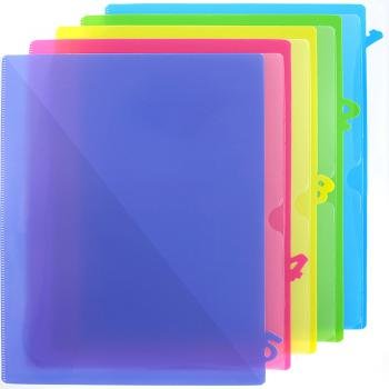 Comix Očíslovaná sada složek 2-kapsy A553 A4. Formát A4 vyrobený z vysoce odolného polypropylenu PP. Složky jsou určeny pro ukládání důležitých dokumentů. Složky jsou očíslovány od 1 do 5 a každá složka má jinou barvu. Chrání proti vlhkosti a nežádoucím vlivům. Výrobce doporučuje použití pro podniky, školy, instituce a úřady.