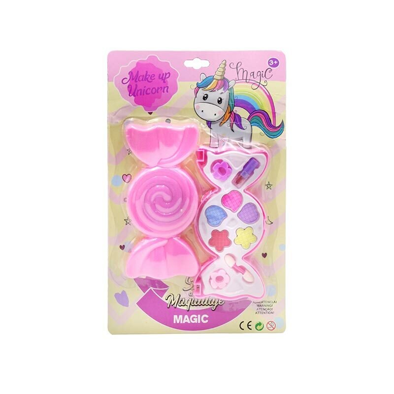 Zestaw piękności do makijażu z paletką cieni w kształcie różowego cukierka. Paletka otwiera się i zamyka. Kosmetyki są przyjazne oraz nietoksyczne dla skóry i można je łatwo zmyć. Idealny zestaw do makijażu dla każdej dziewczynki.Zawartość:- 5 cieni do oczu,- aplikator,- 2 spinki,- pomadka....