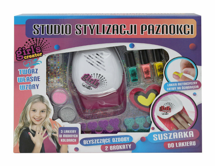 Zestaw manikiurzystki, do malowania i stylizacji paznokci.W zestawie: suszarka do paznokci, 3 lakiery w różnych kolorach, 2 separatory, 2 pojemniczki z brokatem, arkusz błyskotek, pilniczek do paznokci.Baterie: 2 x 1,5V AA (brak w zestawie).Wymiary opakowania: 34x26,5x7,5 cmDla dzieci w wieku...