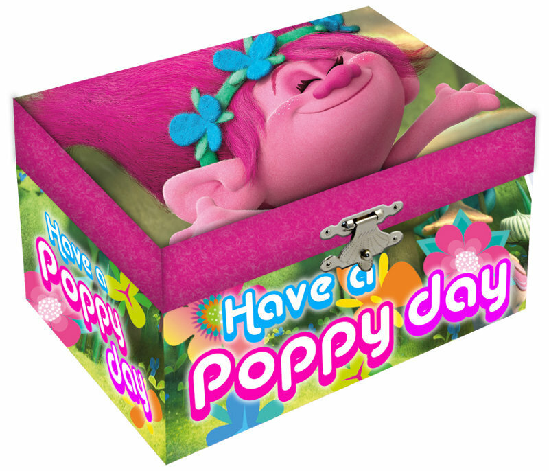 PROMO Pudełko szkatułka na biżuterię z lusterkiem, światełkami LED, 14,8x8,4x10,5cm Trolls TR17027 Kids Euroswan