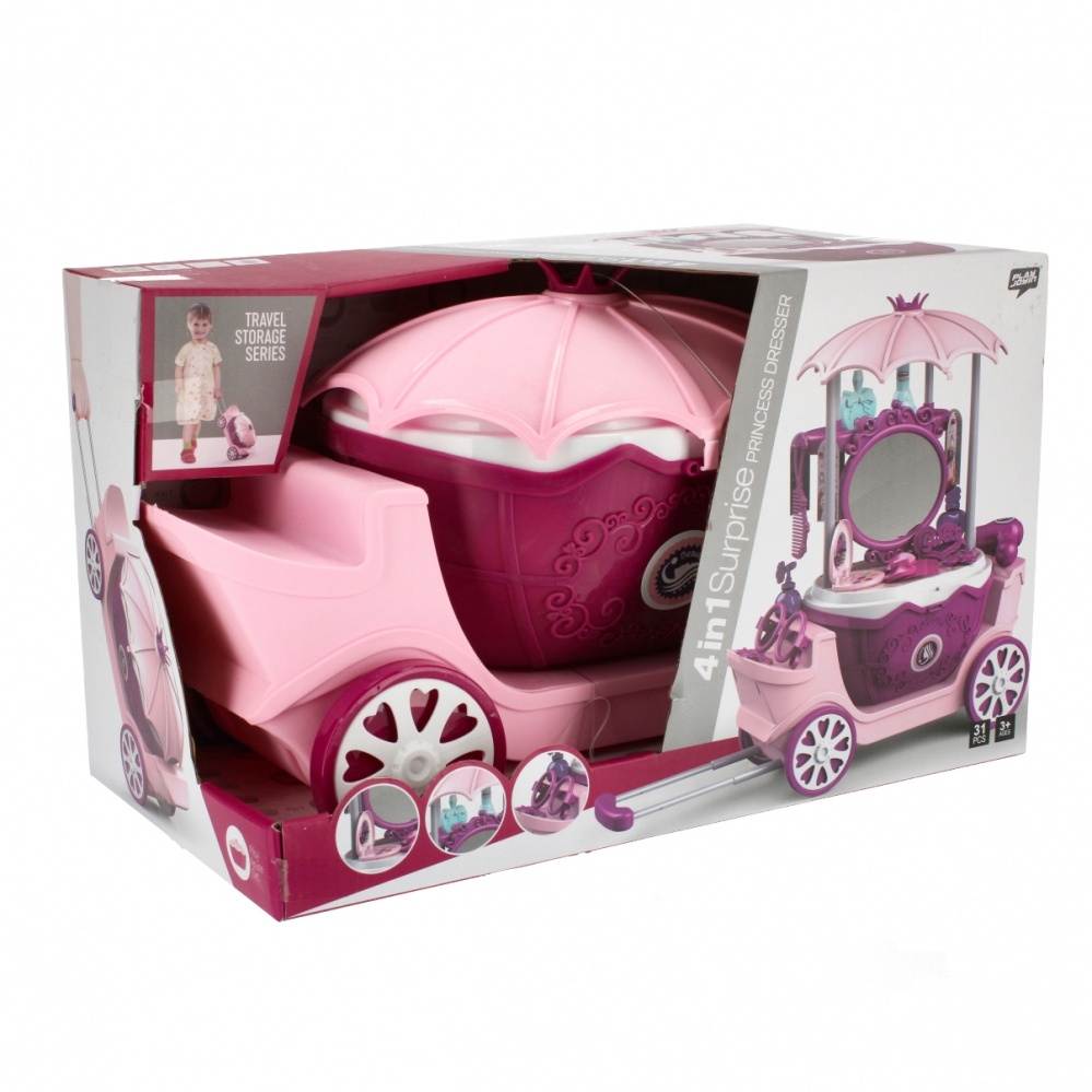 Zalety produktu: przenośna toaletka w formie walizki, posiada kółka do przewożenia, można ją też przenosić w formie koszyczka dzięki czemu możesz zabrać ją ze sobą oraz wszystkie swoje ulubione kosmetyki tak aby mieć je zawsze pod ręką, toaletka w kolorze różowo-fioletowym, sznurek służy jako uchwyt, posiada duże lustro, pobudza wyobraźnię dziecka. Toaletka MEGA CREATIVE dla małej modnisi. Spełni marzenie nie jednej małej Księżniczki by móc wyglądać zawsze pięknie, zawsze lśniąco Zawartość zestawu: toaletka z daszkiem, lustro, okulary, 3 x spinki, cienie do powiek, 2 x flakonki z perfumami, grzebień, suszarka do włosów, spinkaz grzebieniem. Całość wykonana z plastiku. Wymiary/waga/baterie wymiary produktu dł. x wys. x gł. cm : 33x20x20, wymiary opakowania dł. x wys. x gł. cm : 36x22x19, waga produktu bez opakowania kg : 0,81 kg, waga produktu z opakowaniem kg : 1,03 kg, Nie wymaga zasilania bateriami. Zestaw przeznaczony dla dzieci w wieku: 3 . Pakowany w kartonik z okienkiem. W kartonie zbiorczym po 12 szt.