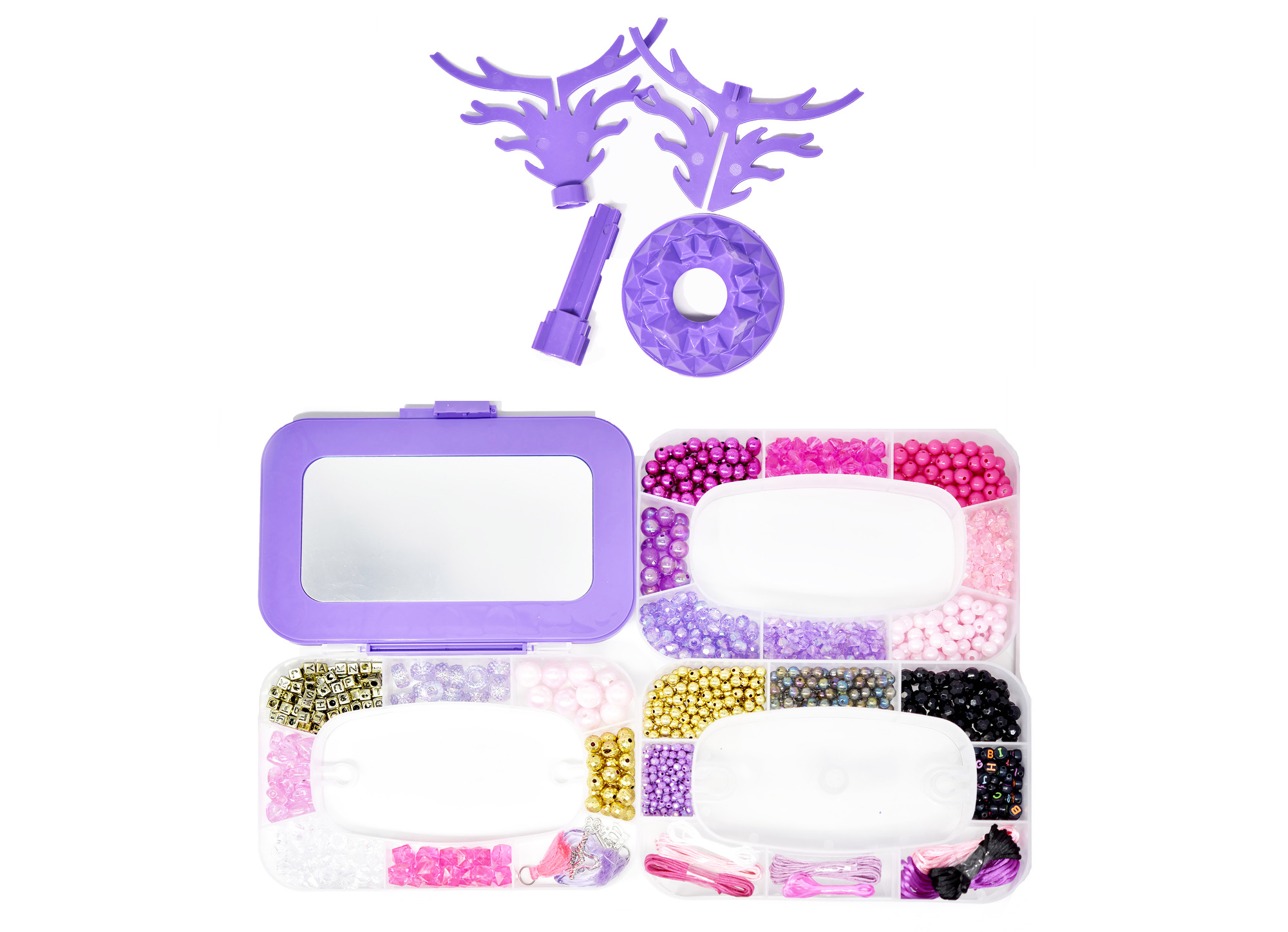 Tvorba náramků set s krabičkou. Obsahuje krabičku na organizaci korálků, korálky, šňůrky, stojánek na hotové náramky číst celé