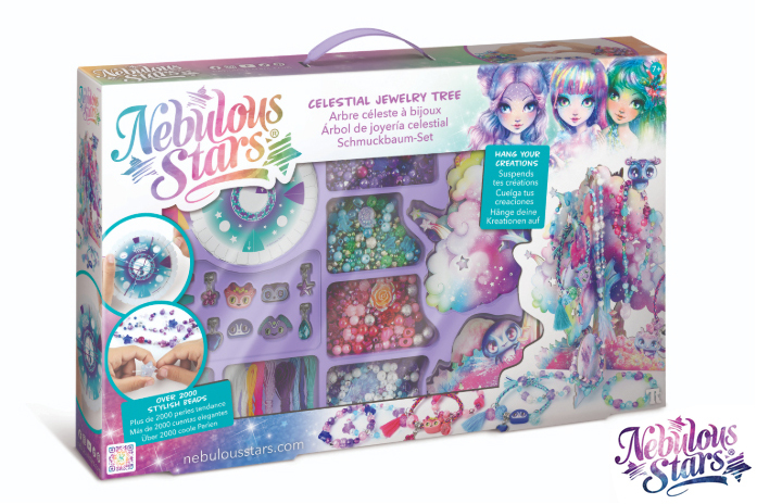 Nebulous Stars Hvězdný strom set na výrobu šperků. Sada na výrobu vlastních šperků a Hvězdný strom, abyste si vytvořené šperky mohli vystavit. Obsah balení - kartonový hvězdný strom na pověšení šperků, 4 splétací kruhy na pletení náramků ve 4 vzorech, nylonové provázky 8 barev, 6 metrů elastického provázku, přes 2000 korálků různých tvarů a barev, 4 kovové přívěsky, 4 střapcové přívěsky, 4 gumové přívěsky s animouši, 10 kovových spon, 30 spojovacích kroužků, obrázkový návod.