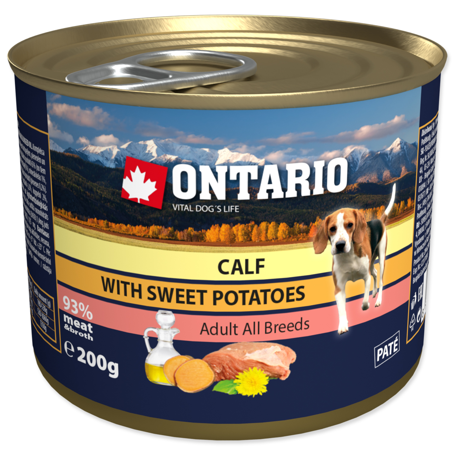 Konzerva ONTARIO Dog Mini Calf, Sweetpotato, Dandelion and Linseed oil