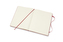 Zápisník s pevnou, ve hřbetu šitou vazbou v kartonových deskách, obepnutý pružnou páskou proti samovolnému otevírání. Zápisník je vybaven pořadačem poznámek, který je vyroben z tkaniny a kartonu, textilní záložkou a letákem s historií MOLESKINE. Gramáž papíru 70 g/m2, neobsahuje kyseliny.