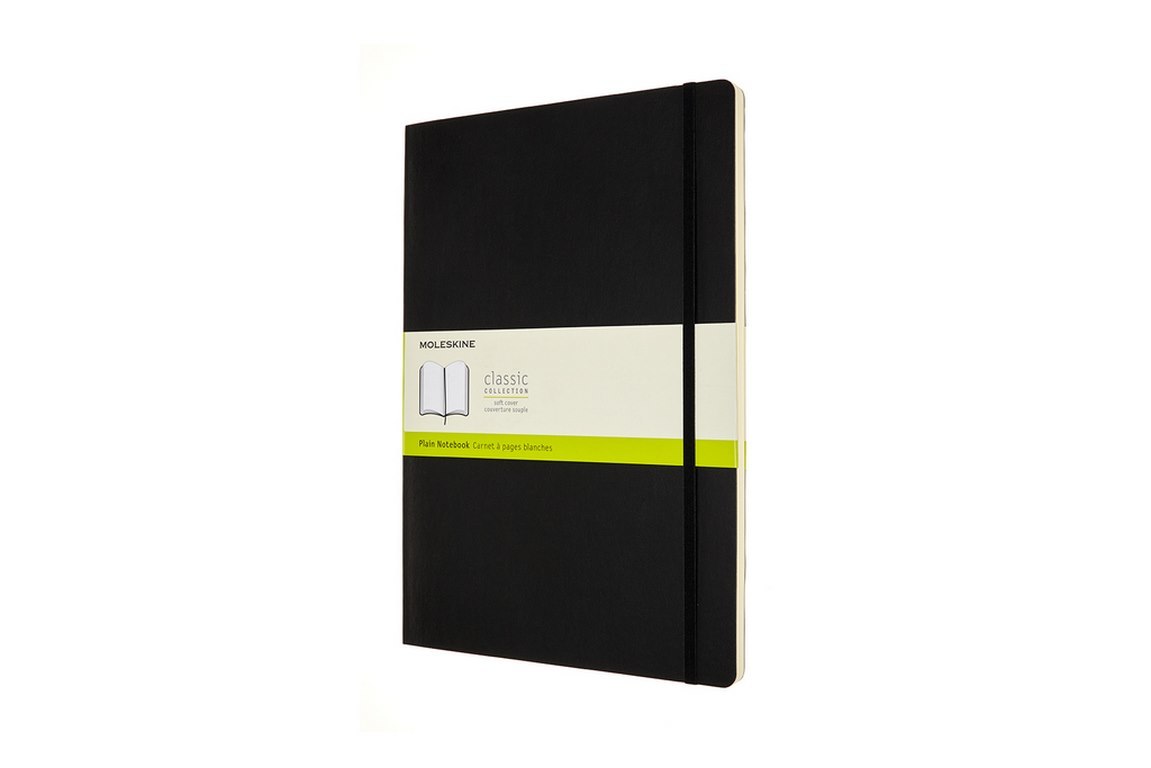 Čistý zápisník velikosti A4 v měkké vazbě. Obepíná ho pružná páska proti samovolnému otevírání. Každý zápisník je vybaven pořadačem poznámek, který je vyroben z tkaniny a kartonu, textilní záložkou a letákem s historií Moleskine. Papír s gramáží 70 g/m2 neobsahuje kyseliny. číst celé