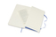 Zápisník má měkkou, ve hřbetu šitou vazbu. Obepíná ho pružná páska proti samovolnému otevírání. Každý zápisník je vybaven pořadačem poznámek, který je vyroben z tkaniny a kartonu, textilní záložkou a letákem s historií Moleskine. Papír s gramáží 70 g/m2 neobsahuje kyseliny.