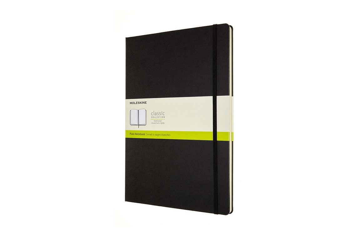 Čistý zápisník velikosti A4 v tvrdé vazbě. Obepíná ho pružná páska proti samovolnému otevírání. Každý zápisník je vybaven pořadačem poznámek, který je vyroben z tkaniny a kartonu, textilní záložkou a letákem s historií Moleskine. Papír s gramáží 70 g/m2 neobsahuje kyseliny. číst celé