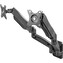 Tento duální držák monitorů je vybaven plynovým pístem pro vyrovnání zátěže, díky čemuž snadno nastavíte úhel a výšku obrazovky bez námahy. Podporuje monitory s úhlopříčkou od 13" do 32" a umožňuje široký rozsah pohybu - náklon až +90°/-45°, natočení a rotaci ve všech směrech, včetně orientace na šířku i na výšku. Montáž na zeď šetří místo na vašem pracovním stole a přináší elegantní a funkční řešení pro uspořádání více monitorů.