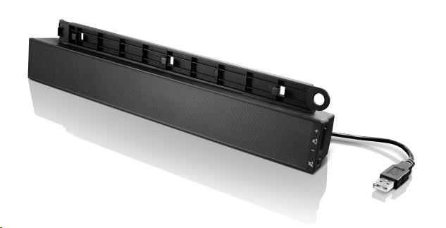 Lenovo USB Soundbar vám umožní přidat stereo zvuk do vašeho kompatibilního monitoru Lenovo ThinkVision, aniž byste museli obětovat cenné místo na stole. Stylový Lenovo USB Soundbar je vynikající volbou pro přidání stereo zvuku do webového vysílání, multimediálních prezentací a dalších aplikací, které vyžadují zvuk.