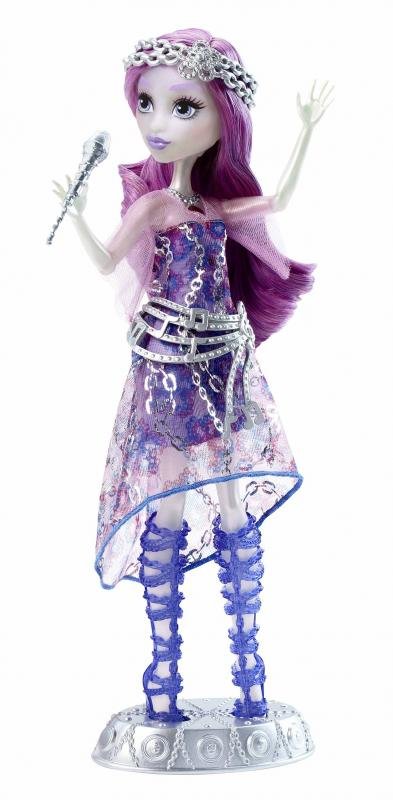 V novém příběhu “Dance the Fright Away ” se všichni studenti Monster High spojí, aby znovu otevřeli tu nejvíc booží střední školu. Přitom se objevuje i dosud nepoznaná stránka Spectry Vondergeist. Prožij se Spectrou neuvěřitelné příběhy, který sama nevymyslíš. Tím že přiblížíš, nebo oddálíš od Spectry svoji dlaň, budeš díky senzoru pohybu moci ovládat světla i hudbu. Spectra rozbalí pořádnou shoow! A začátek i konec téhle hudební shoow máš pod palcem ty! Jsou to čáry! Spectra Vondergeist má naprosto booží oblečení v boohemské stylu jako ve filmu - děsivě kovově blyštivou čelenku ve vlasech, pásek a gladiátorské sandálky. Panenka má stojan a mikrofon, aby to pořádně rozjela a ukázala ti, co umí.
