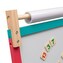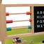 Oboustranná plocha nabízí magnetickou bílou stranu pro psaní fixem a černou tabuli pro kreativní kreslení křídou. Počítadlo s barevnými korálky pomáhá při prvních matematických krůčcích, zatímco dřevěné hodiny s pohyblivými ručičkami učí základy času. Magnetická písmena a čísla podporují osvojení abecedy a počítání, a praktická role papíru dává možnost kreslit i pastelkami. Odkládací police umožňuje udržet pořádek v příslušenství a pomůckách.