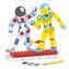 Pohyblivé postavičky z nové řady Play Montessori pomáhají dětem od 4 do 7 let zábavným způsobem rozvíjet jejich poznávací schopnosti a vizuomotorickou koordinaci. Při jejich sestavování pomocí šroubků, podložek a matiček z trvanlivého plastu si děti zároveň procvičují a zdokonalují jemnou motoriku i manuální zručnost a rozvíjejí také svou grafomotoriku, což je soubor psychomotorických činností nezbytných k úspěšnému zvládnutí psaní a kreslení. Obsah: 2 postavičky z odolného masivního kartonu 10 šroubků, 10 matic a 6 distančních podložek 3 podstavné plochy a 56 kolíčků 1 příručka Play Montessori