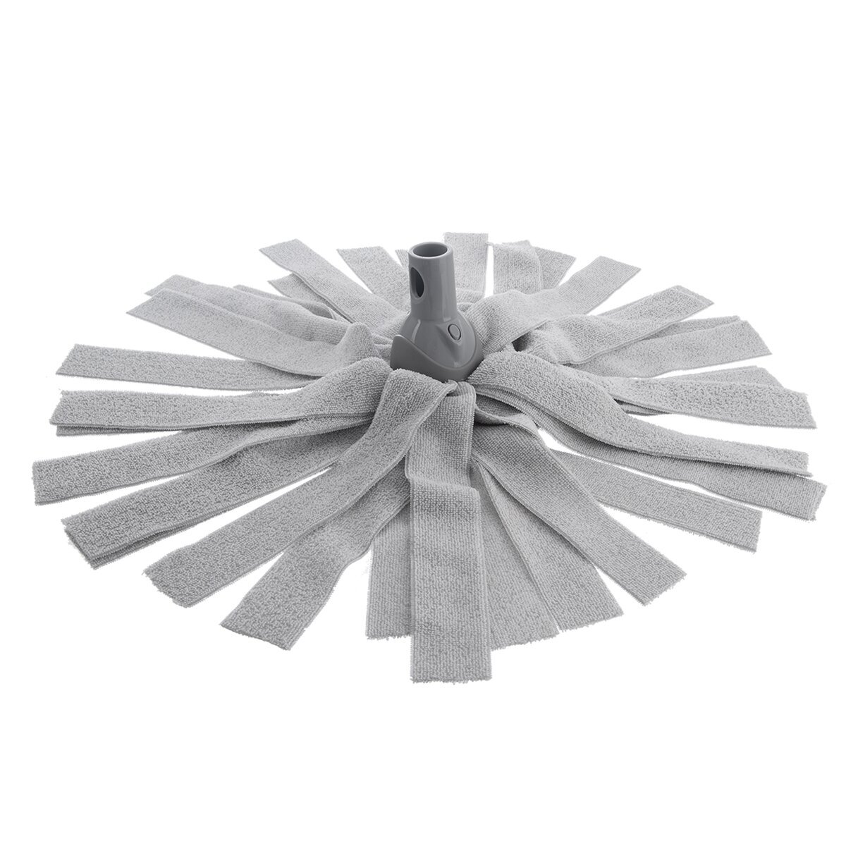 Koncovka mopu z kolekce CLEAN SYSTEM je kompatibilní s holí 711521 a s teleskopickou holí 711522, upevňuje se velmi snadno na klip. Je vhodná na mokré i suché vytírání, na všechny typy podlah. Materiál: plast PP + termoplastický kaučuk TPR (hlavice), polyester (koncovka). Rozměry: d. 35 cm, třásně d. 27 cm, š. 4,5 cm. Doporučujeme ruční praní.