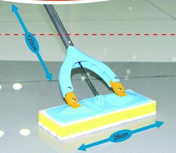 Mop je originální a praktický pomocník při uklízení v každé domácnosti. Kvalitní hliníková teleskopická tyč velmi usnadňuje práci s tímto mopem bez zbytečného ohýbání. Návlek na mop je z mikrovlákna je velmi široký a tím umožňuje vytřít najednou větší část plochy. Mirkovláknový návlek je pratelný na 30°C. Tento mop doporučujeme pro rychlý a kvalitní úklid každé domácnosti. Náhradní houba mopu pro vytírání je nedílnou součástí k položce 420005. Lehká manipulace při výměně. Rozměry - 27,5 x 10,5 x 140 cm.