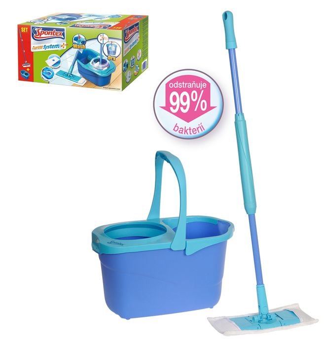 Spontex Mop Express System plus přichází s vylepšenou technologií ždímání. Stačí mop nasadit na trn a pohybem rukojeti aktivovat odstředivý 360stupňový mechanismus. Tento způsob ždímání mop také zbaví veškerých nečistot jako chlupy a vlasy, které se na něm během úklidu zachytí. Návlek mopu je vyroben z kvalitního mikrovlákna, proto je Spontex Express Systém účinný i bez použití čistících prostředků. Stačí čistá voda a poradí si se všemi typy podlah. Tvar hlavice zase zajistí, že mu neunikne ani špína v rozích a podél zdí.