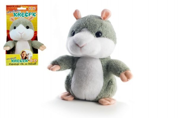 Křeček upovídaný opakující plyš 20cm na baterie se zvukem v krabičce