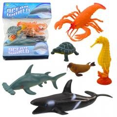 ZESTAW FIGUREK ZWIERZĄT MORSKICH 6 SZTUK Zestaw figurek zwierząt morskich to doskonała zabawka edukacyjna dla dzieci, które interesują się przyrodą i podwodnym światem. W zestawie znajduje się aż sześć realistycznie odwzorowanych stworzeń oceanicznych, takich jak rekin młot, orka, konik morski, żółw, homar i mors. Każda figurka została wykonana z elastycznego tworzywa sztucznego i pokryta szczegółowym malowaniem, co nadaje im autentyczny wygląd i zachęca do zabawy. Zabawka doskonale sprawdzi się do samodzielnej zabawy, tworzenia scenek i rozwijania wyobraźni. Figurki mogą być także wykorzystywane do celów edukacyjnych, np. podczas nauki o środowisku morskim czy podczas zajęć przedszkolnych. Ich kompaktowe rozmiary i bezpieczne wykonanie czynią je idealnymi dla dzieci już od najmłodszych lat. Komplet zapakowany jest w przezroczyste opakowanie foliowe z kolorową grafiką, co czyni go gotowym pomysłem na drobny upominek. SPECYFIKACJA: Materiał: Tworzywo sztuczne Liczba elementów: 6 figurek Wymiary opakowania: 31 x 23 x 5 cm ZAWARTOŚĆ ZESTAWU: Rekin młot Orka Konik morski Homar Żółw Mors