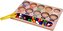 Dřevěná deska s 11 otvory a nápisy barev v angličtině