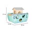 Díky kvalitnímu dřevu, hladkým hranám a odolné povrchové úpravě je hračka bezpečná pro malé ruce. Pastelové potisky a promyšlené detaily podporují smyslové vnímání a učení hrou. Praktická loď zároveň slouží jako úložiště pro všechny dílky.