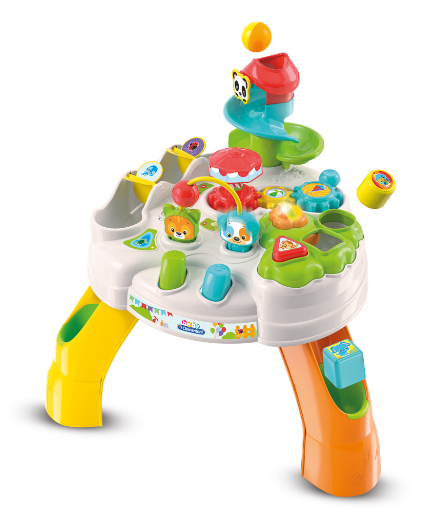 Rozvíjejte dovednosti vašeho dítěte hravou formou! Hrací stůl Clementoni baby s kostkami a zvířátky nabídne vašemu malému objevovateli hodiny zábavy a učení.