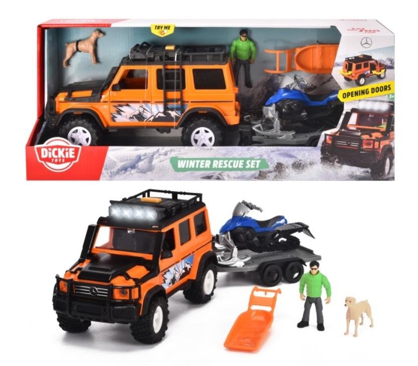 Duży pojazd z figurkami, przyczepą ze skuterem śniżynym oraz akcesoriami. číst celé