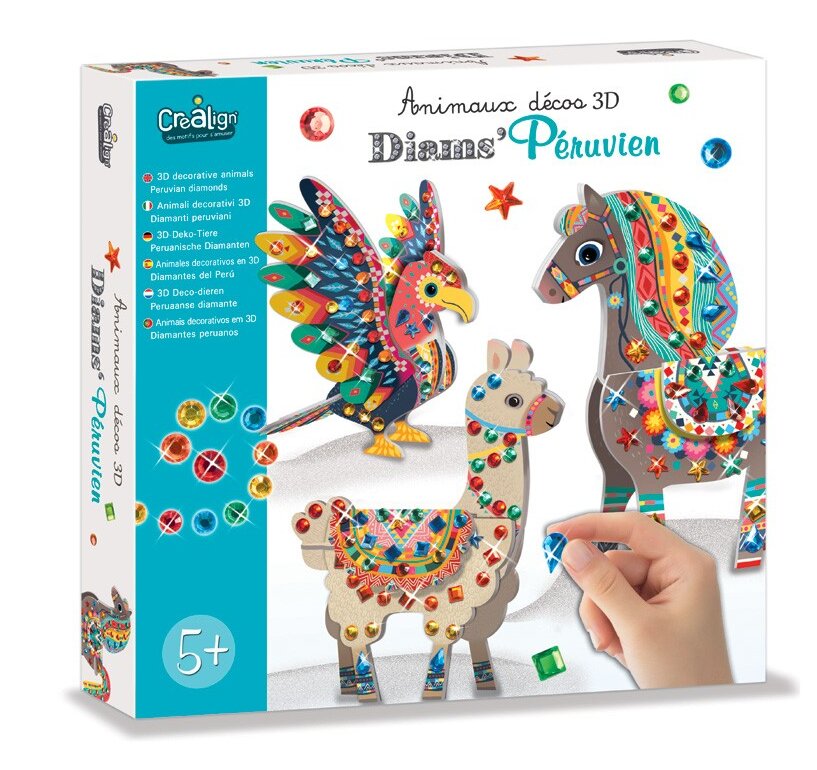 Jedinečná kreatívna súprava s diamantovými nálepkami a 3D zvieratkami od francúzskej značky Crea Lign je vhodná pre deti od 5 rokov. Obsahuje 3 zvieratká na zostavenie a 495 diamantových nálepiek. Deti si najskôr zostavia figúrky zvieratiek, a potom si ich krásne vyzdobia nalepovacími kamienkami. Po dokončení si ich vystaví ako dekoráciu.