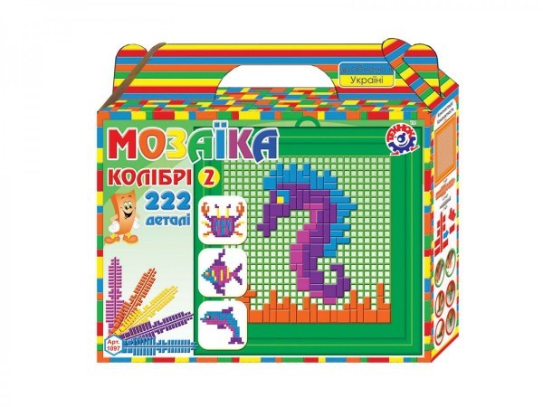 Do plastové mřížky se vmačkávají dílky dle fantazie nebo předlohy. Balení obsahuje 222 dílků. Rozměry balení 22 x 20 x 5 cm. Vhodné pro děti od 5 let.
