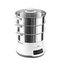 Vařte v páře až 3 pokrmy najednou. Hrnec se skládá ze 3 úrovní. Vložte do jedné varné nádoby kuřecí prsa, do druhé zeleninu a do poslední rýži a vytvořte tříchodový oběd. Do každé nádoby se vejde porce až pro 4 osoby.