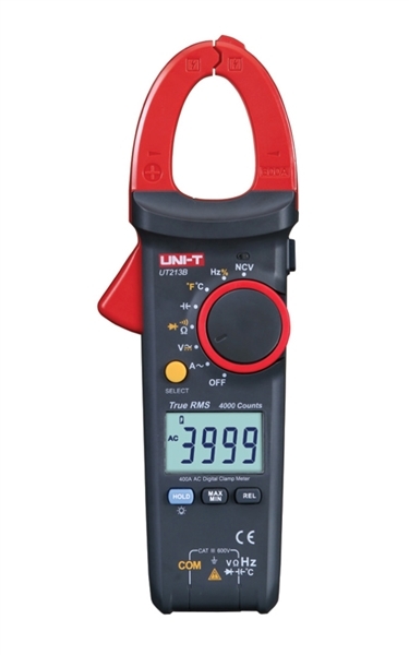 Digitální klešťový multimetr UNI-T UT213A* Do 400A* Multifunkční přístroj * Středně velké kleště 30mm* Praktická led svítilna* NCV funkce* Moderní ochrana vstupůTECHNICKÉ SPECIFIKACE:• Střídavý proud: 4A / 40A / 400A ±(1.8%+9)• Střídavé napětí: 4V / 40V / 400V / 600V ±(1.2%+5)• Stejnosměrné: napětí 400mV / 4V / 40V / 400V / 600V ±(0.8%+1)• Odpor: 400Ohm / 4kOhm / 40kOhm / 400kOhm / 4MOhm / 40MOhm ±(1.0%+2)• Frekvence: 10Hz-1MHz ±(0.1%+4)• Rozevření kleští 30mm• Max. displej 4000• Automatické nastavování rozsahu • Vnitřní průměr kleští 30mm• NCV• Data Hold• Relativní mód• Podsvětlení displeje• LED svítilna• Automatické vypínaní• Prozvánění• Indikace slabé baterie• Ochrana vstupů• Vstupní impedance pro DCV >10MOhm• Napájení: 3 x 1.5V baterie AAA• Rozměry LCD: 38x24mm• Hmotnost: 280g• Rozměry: 220x75x40mmPŘÍSLUŠENSTVÍ:• Baterie • Měřicí hroty• Návod