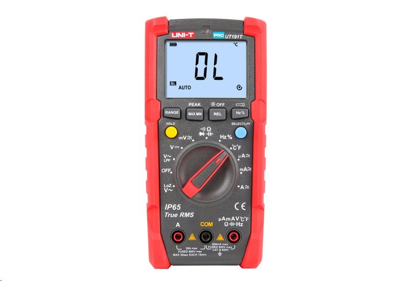Profesionální měřicí přístroj UNI-T UT191T PRO patří mezi univerzální měřicí přístroje, které umožňují měření základních elektrických veličin, tj. stejnosměrného nebo střídavého napětí, stejnosměrného nebo střídavého proudu a také odporu. Kromě toho tento model umožňuje kontrolovat spojitost obvodů, testovat diody a také měřit teplotu kapacity, frekvenci a činitel plnění.