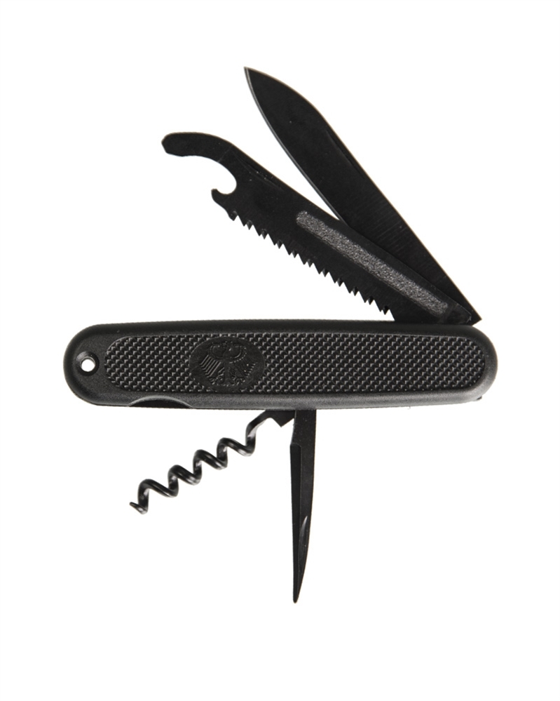 Tento kapesní nůž je vyroben podle originálu německé armády Bundeswehr a zaujme především svou odolnou plastovou rukojetí s elegantním motivem orlice. Díky své multifunkčnosti zahrnuje několik užitečných nástrojů - kromě hlavního nože zde najdete pilku se zabezpečovacím krytem, pilník, vývrtku, otvírák a malý šroubovák. Všechny tyto komponenty jsou nenápadně integrovány, takže je můžete mít stále po ruce pro rychlé řešení nepředvídatelných situací.