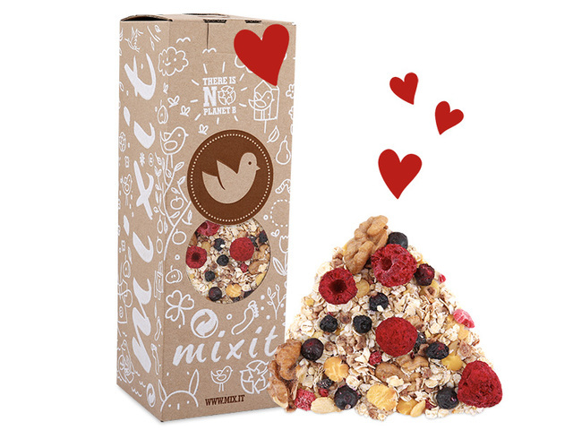 ❤ Müsli na srdce jsme vytvořili pro všechny, kteří chtějí myslet na své zdraví a ještě si náramně pochutnat. Každou surovinu v tomto mixu jsme vybírali od srdce pro srdce. Proto v mixu najdete také květy lípy srdčité. Společně s výživovými poradci jsme našli dokonalou kombinaci, kdy jazyk i srdce zaplesá. A povedlo se to navíc bez přidaného cukru, bez lepku a bez laktózy a mléčné bílkoviny. To vše v ekologické krabičce se srdcem na pravém místě. β-glukany v ovesných vločkách přispívají k udržení normální hladiny cholesterolu v krvi. * Maliny a borůvky jsou antioxidanty a ty naše navíc krásně křupou. Vlašský ořech napomáhá metabolismu lipidů. Pohanka je známá pro svůj příznivý vliv na zdraví cév, které tak mohou zase pomáhat udržovat zdravé srdce. Sojové vločky mix nabily porcí bílkovin a schopností snižovat cholesterol. Lípa srdčitá celý mix korunuje. Prostě od srdce pro srdce! * Příznivého účinku se dosáhne při přísunu 3 g beta-glukanů z ovsa, ovesných otrub, ječmene, ječných otrub nebo ze směsí těchto zdrojů denně. V jedné 60g porci Müsli na srdce může být až 1,3 g beta-glukanů. Složení: ovesné vločky bez lepku 40 %, sójové vločky, pohankové lupínky, jádra vlašských ořechů, lyofilizované maliny 8 %, lyofilizované borůvky 5 %, květy lípy srdčité 0,5 % (Tiliae cordata) Může obsahovat stopy lepku, jiných skořápkových plodů, arašídů, mléka a sezamu.