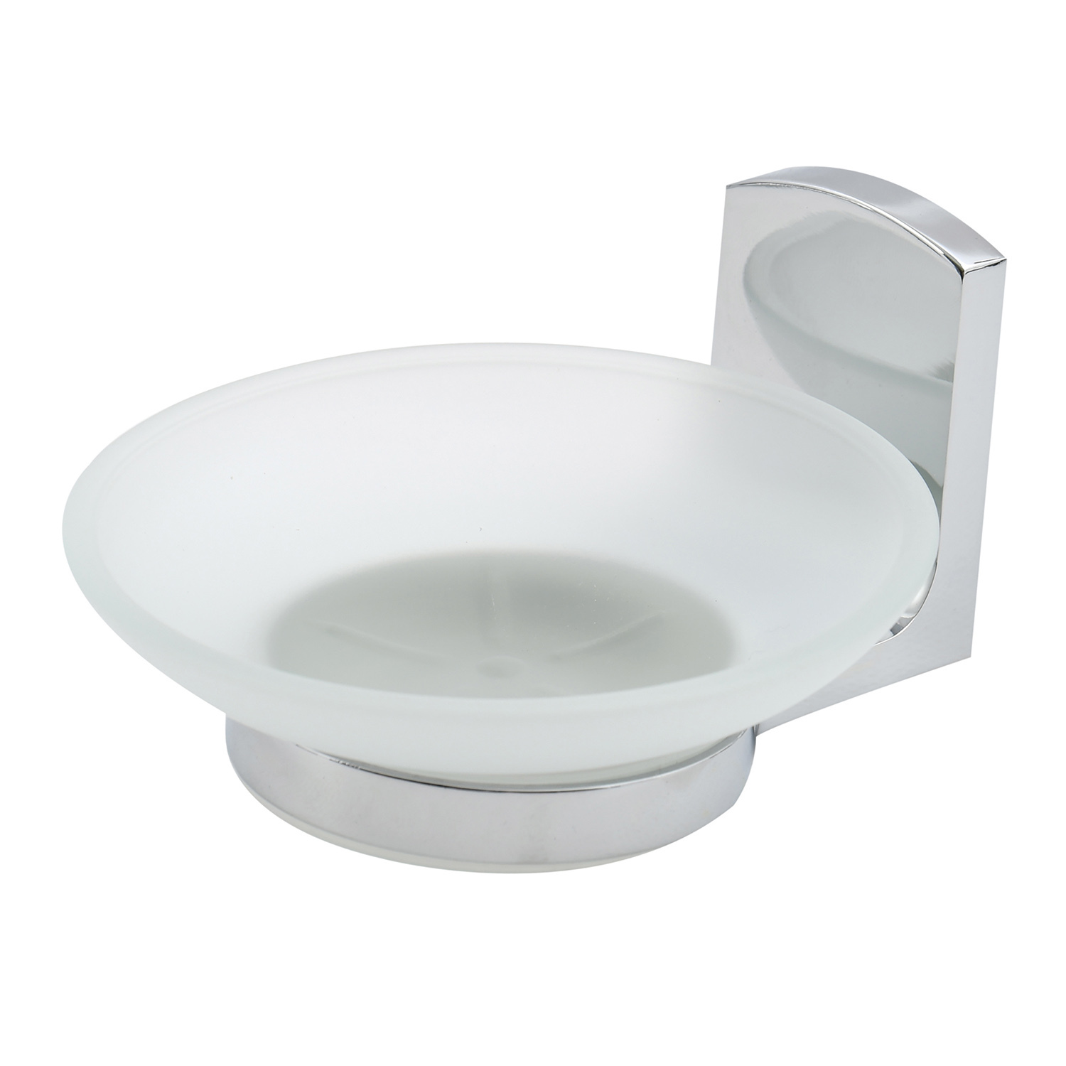 Spirella nástěnný držák s mýdlenkou TAKU, matná bílá, sklo, lesklá chromovaná ocel