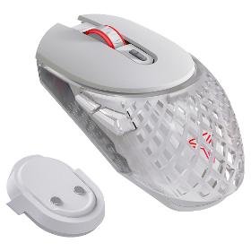 Unikátní myš AURA je osazena pokročilým optickým senzorem Pixart 3335, který disponuje 15000 DPI, akcelerací 40G a Polling Rate až 1000Hz. Tyto vlastnosti lze nastavit v programu, který je k myši k dispozici, společně s jejím podsvícením. Program též nabízí možnost programování jednotlivých tlačítek a jejich funkcí, lze si tak myš upravit zcela individuálně aby vyhovovala vaším specifickým potřebám. Perforované tělo myši ji dělá lehkou a vzdušnou, zároveň jí propůjčuje ojedinělý vzhled a pocit v ruce. Skrz vzor horního krytu myši lze vidět podsvícené logo značky, svítí i středové kolečko myši. Bezpochyby největší předností myši je konektivita spojená s nabíjením myši, tedy její magnetická dokovací stanice, která působí rovněž jako přijímač 2.4G, není tedy třeba již připojovat další USB přijímač nebo další kabely. V případě, že si však myš chcete vzít s sebou bez nabíjecí stanice, máte možnost připojení přes Bluetooth, nebo klasickým USB-C kabelem do předního konektoru myši, čímž se bude zároveň i nabíjet. Dokovací stanice disponuje spodní výsuvnou krytkou, kterou lze připevnit ke stolu či dokonce na zeď. Stanice tak bude bezchybně pevně držet, zároveň ji lze v případě potřeby vysunout a vzít si bez problému s sebou. Integrovaná baterie o kapacitě 500mAh nabízí až 50 hodin nepřetržitého používání, díky magnetickému nabíjení se pak zvládne nabít znatelně rychleji než přes klasický konektor.