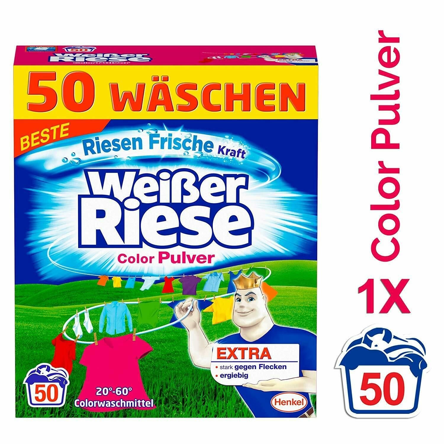 Weisser Color Pulver - parfemovaný německý prací prášek na barevné prádlo - 50 pracích dávekSpeciálně parfemovaný německý prací prášek Weisser Riese Color Pulver je pro milovníky krásných a jemných a čistých vůní. Tento prášek je vhodný na univerzální praní barevného a stálobarevného prádla a je inspirován. Prací prášek je koncentrovaný a obsahuje formuli pro ochranu vláken a optické zjasňovače, které dodávají prádlu kráně bílou barvu bez poškození tkanin. Prací prášek není vhodný na praní jemného prádla, vlny a hedvábí.