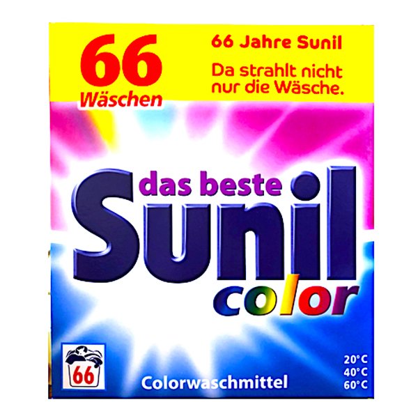 Sunil Aktiv prací prášek na barevné prádlo - 66 pracích dávek 3,96kg Sunil Color je kvalintí a voňavý německý prací prášek na barevné prádlo, který je vhodný pro pravidelné praní běžného barevného prádla kromě jemného prádla, vlny a hedvábí. Přípravek Sunil má velice dobrý prací účinek a je...