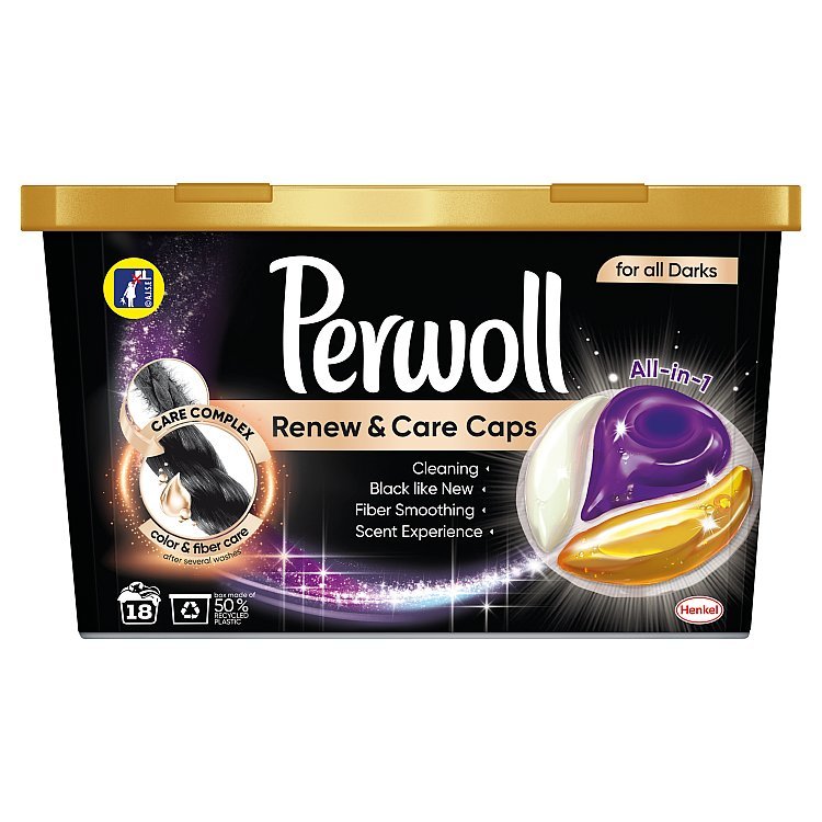 Zajistěte vašemu oblečení tu nejlepší možnou péči s kapslemi Perwoll Renew & Care Black. Šetrně, ale zároveň účinně pečují o vaše prádlo. Díky třem speciálním komorám aktivně udržují a obnovují oblečení již po prvním vyprání. Prádlo bude zářivě čisté s obnovenými barvami. Složení kapslí Perwoll Renew & Care Black vyhladí vlákna a dopřeje vašemu prádlu příjemnou květinovou vůni. Obal kapslí Perwoll Renew & Care Black je vyroben z 50% recyklovaného plastu a je dále plně recyklovatelný. Obal je biologicky odbouratelný a obsahuje o 85 % méně vody než běžný tekutý prací prostředek. Kapsli Perwoll Renew & Care Black stačí jednoduše položit do bubnu pračky a následně vložit prádlo. Poté vám stačí vybrat příslušný program. Výsledkem bude krásně čisté a svěže provoněné prádlo.
