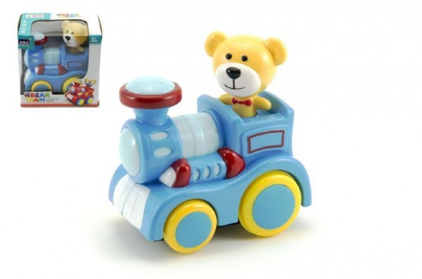 Vlak s medvídkem plast 13cm narážecí na baterie se světlem v krabici