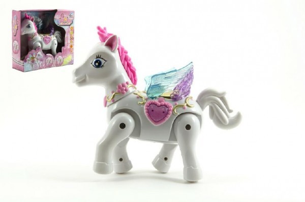 Kůň s křídly chodící plast 22cm na baterie se zvukem se světlem v krabici