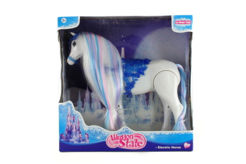 Plastový kůň chodící a se zvuky. Vydává zvuky cválání a ržaní. Rozměry cca 24 x 27 cm. Rozměry balení cca 29 x 29 x 9 cm. Napájení 3x AA baterie - nejsou součástí. Věk 3+