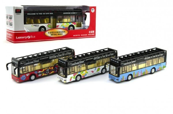 Model dvoupatrového autobusu,je vyrobený z kovu a plastových částí, kola jsou gumová. Model je se světlem a zvukem. Vhodné od 3 let,