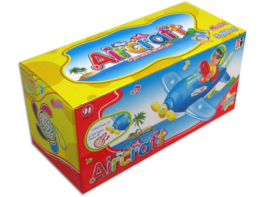 Letadlo s pilotem na baterie. Hračka se světelnými a zvukovými efekty (zvuk startujícího ledadla) s funkcí narazí, odrazí.