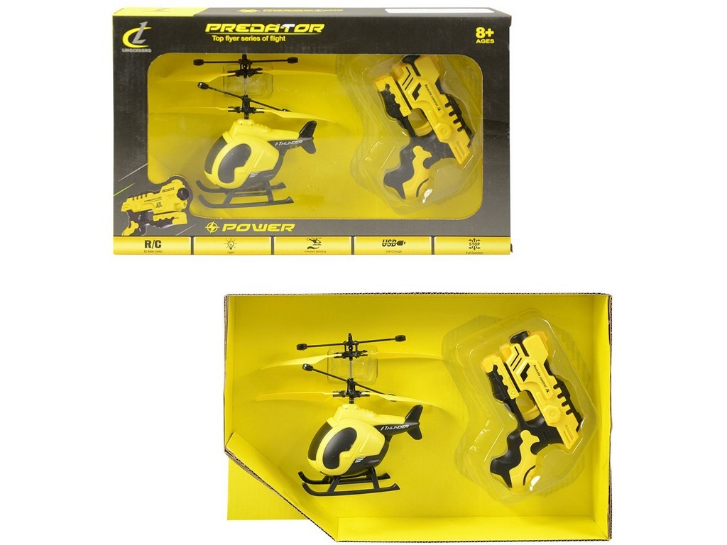 Helikoptéra na dálkové ovládání pistolí s infračerveným světlem. Namiřte na helikoptéru pistoli, stiskněte spoušť a ovládejte její let. Držte helikoptéru v ruce a zapněte ji, pomalu uvolněte ruku a helikoptéra se bude vznášet. Pokud na helikopotéru namíříte infrared pistoli a stiskněte spoušť bude helikoptéra stoupat, pokud spoušť uvolníte, helikoptéra začne klesat. Helikoptéra má vestavěnou baterii, která se nabíjí přes USB konektor (průběh nabíjení indikuje LED dioda). Pistole je napájena bateriemi 3 x 1,5 V AA. Helikoptéra je určená pro let v klidných vnitřních prostorách. Rozměr boxu 31 x 6 x 20 cm. Vhodné pro děti od 8 let.